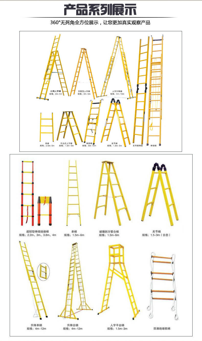 絕緣圓管梯、絕緣圓管伸縮梯:其重量為2KG/M,每米可承受200公斤的沖擊力,采用輕型環(huán)氧樹脂制作,輕便耐用,大大克服了原來市場上所銷售的方管絕緣梯的笨重、攜帶不便的弱點。產(chǎn)品特點:輕便耐用,施工方便。